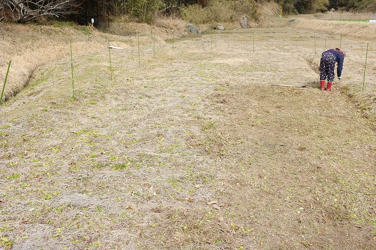 ここをスコップで掘り、畝をつくるところから畑のスタートになる。