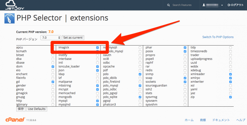 これもSelect PHP Version画面で「imagick」にチェックを入れて保存すればOKです。
