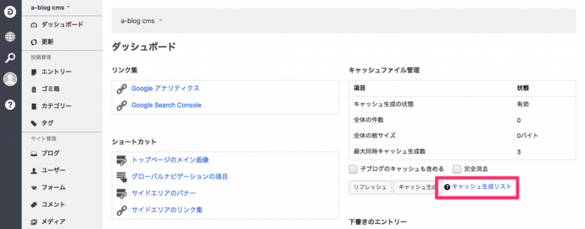 キャッシュ自動生成 | 運用管理 | ドキュメント | a-blog cms developer